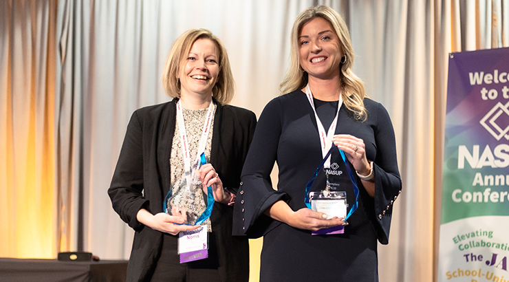 Dr. Meganlyn Norris (left), assistant professor, Elementary, Middle Level, Library and Technologies Education, Kutztown University, and Dr. Shannon O'Donnell (right), principal, Schuylkill Valley Elementary School, have won the Exemplary P-20 Boundary Spanning award from the National Association for School-University Partnerships (NASUP). This competitive national award recognizes those who are exemplary at building and sustaining partnerships between schools and universities.