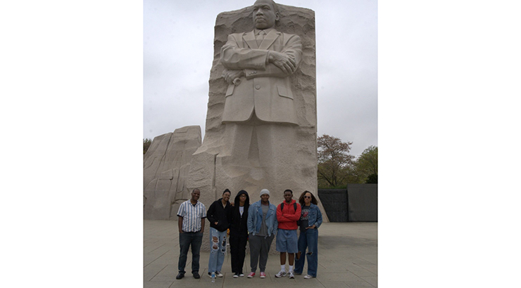 This newsletter is more than a publication; it's the product of an academic year filled with collaboration, creativity and critical literacy skill-building. FDI Student Scholars planned, wrote, edited and designed each piece, developing real-world experience in qualitative research, narrative storytelling and digital design. Navigate here to view The New North Star. Want to Get Involved? FDI is seeking volunteers for our first-ever participation in Allentown’s Juneteenth Celebration, Saturday, June 21, Cedar Beach Park. Help us represent KU and mark this important historical moment that has import for contemporary engagement with social justice. The entire campus community is welcome and can email pabon@kutztown.edu directly to support and/or volunteer. Pictured at the Martin Luther King Memorial in Washington D.C. (L to R): Professor Anthony Smith Jr. (VPA), students Aaliyah Nelson (COE), Devin Looney (LAS), Jeremiah Purvis (LAS), Munyaradzi Mafundikwa (VPA) and FDI Director Dr. Amber Pabon.