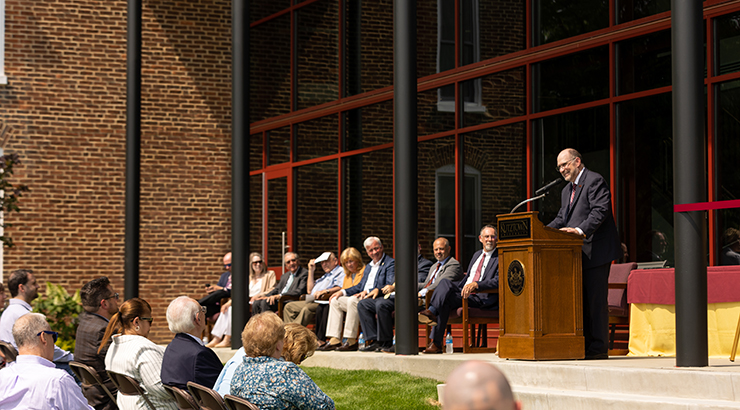 Kutztown University celebrated the ribbon cutting of the Hawkinson Welcome Center Thursday morning, June 5, with the campus and local community in attendance. The building was named in honor of the university’s 12th and current president, Dr. Kenneth S. Hawkinson.