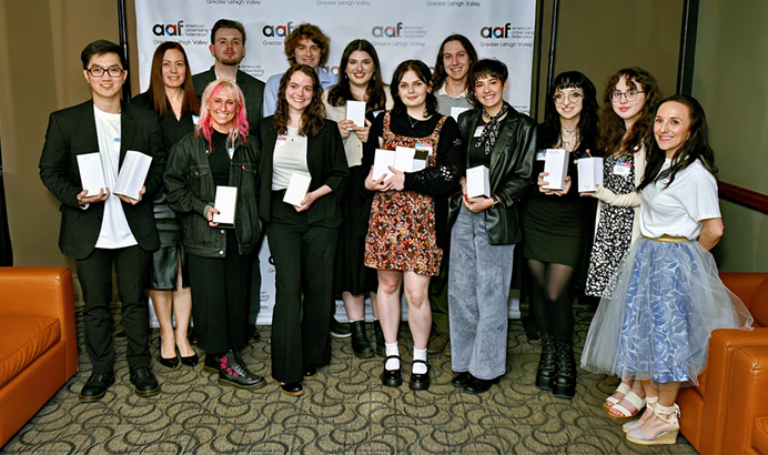 Eleven students, associate professor Dannell MacIlwraith and associate professor Summer Doll-Myers attended the American Advertising Awards Thursday, March 13, at Cedar Crest College in Allentown. Communication Design students received 20 awards, including Best in Show, five Gold and 14 Silver Awards. All gold Addy winners will automatically be entered into the national Addy Awards.