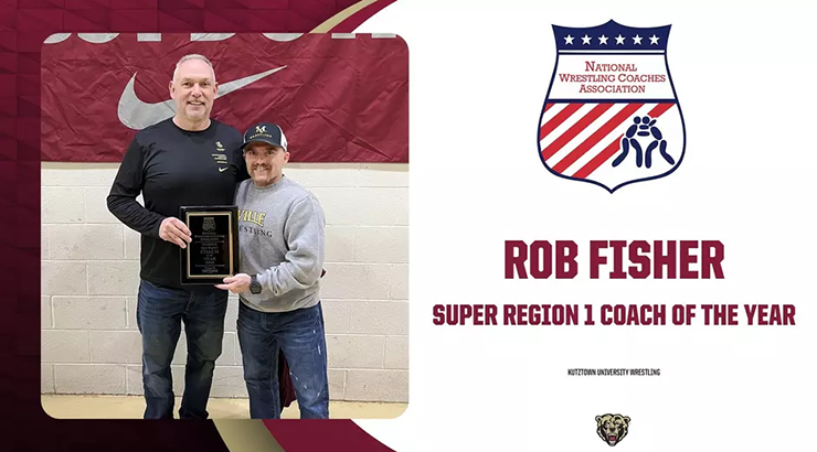 Kutztown University wrestling head coach Robert Fisher has had a season to remember at the helm of the 20th-ranked KU wrestling team, as he was named the NCAA Super Region I Coach of the Year for the first time in his career Friday, Feb. 28. Fisher is nearing the end of his 24th season in charge of Kutztown wrestling.