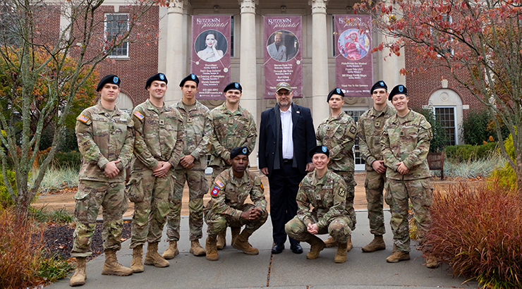 President Hawkinson joined KU's Student Veterans Association and ROTC Monday morning, Nov. 11, for their annual flag-raising ceremony to honor Veterans Day.