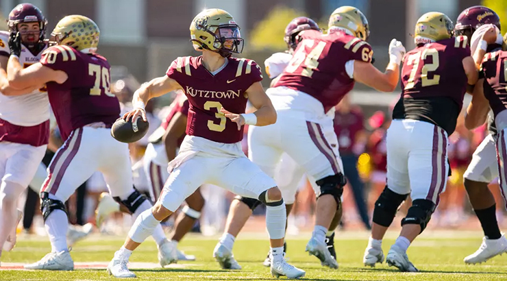 Kutztown University football broke into the top five of the American Football Coaches Association (AFCA) Division II Poll for the first time in program history Monday, Oct. 7. The Golden Bears improved to 5-0 on the season with Saturday's 42-10 win over Bloomsburg and moved up from No. 8 to No. 5 in the latest poll following losses by three of the top seven teams in last week's poll. Prior to Monday's poll release, Kutztown's previous high ranking was sixth back in 2011.
