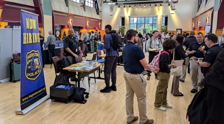 The Department of Criminal Justice and the Career Development Center co-hosted a job and internship fair for criminal justice agencies Wednesday, Sept. 25. More than 25 agencies met with students to discuss internship and employment opportunities for students interested in pursuing careers in policing, corrections, youth and family services, among others. More than 100 students attended the event to learn about the various agencies and made important professional networking connections. We would especially like to thank Kerri Gardi and the Career Development Center staff for their hard work in organizing this excellent event.