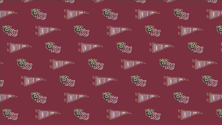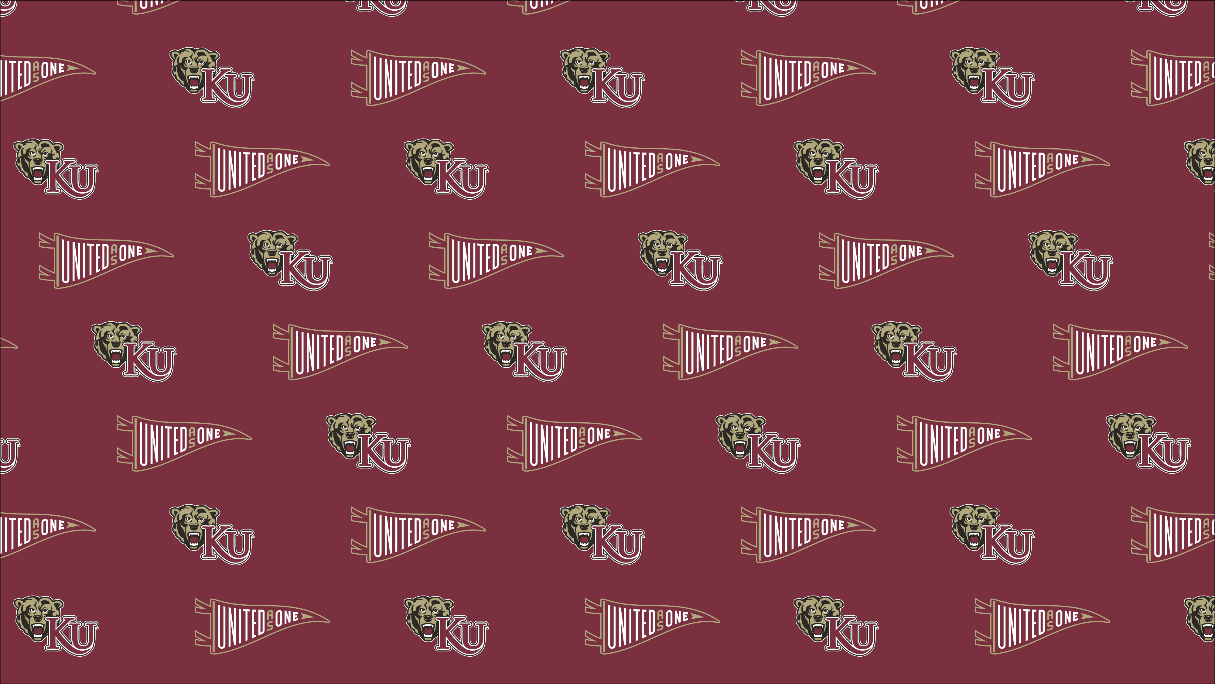 A wallpaper of the United As One pennant, bear and KU logo repeated to fill the background.