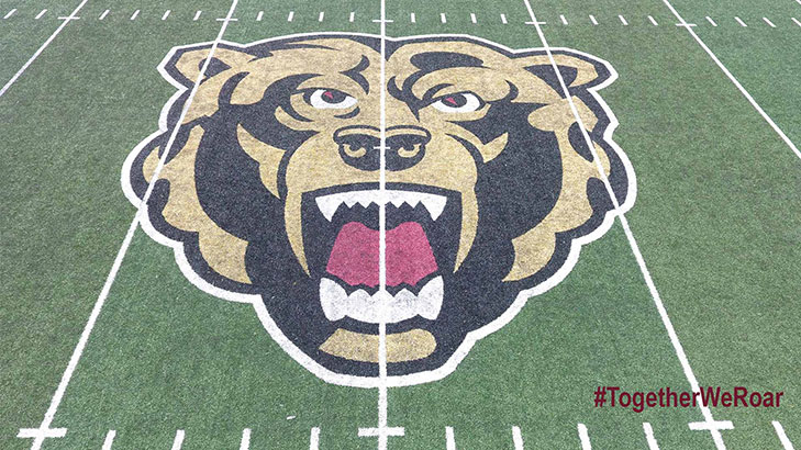 The Golden Bears logo on the field of University Field at Andre Reed Stadium.